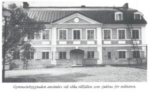 Under Gustav III.s krig 1788-90 användes gymnasiebyggnaden som krigssjukhus. Undervisningen fortsatte emellertid under kriget genom att lektorerna undervisade eleverna hemma hos sig. Efter kriget måste byggnaden genomgå grundliga reparationer. Krigsåren innebar också en förbättring, emedan den övre salen som hade saknat eldstäder och isolering nu fick sådan. Därigenom kunde gymnasiets stora sal i fortsättningen också begagnas under den kalla årstiden. Krigsåren innebar emellertid att elevantalet sjönk till 40 och det tog tid efter kriget innan elevantalet åter var lika stort som före kriget.