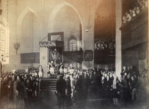 Gymnasiets övre lärosal inreddes till Riks-Sal där Borgå lantdag gick av stapeln 1809, men Emanuel Thelins målning föreställer domkyrkan där kejsar Alexander avgav sin försäkran om Finlands status som storfurstendöme. Tavlan blev klar 1812 och placerades på 1830-talet i gymnasiets övre sal (Bild Nyberg 1991, 72).