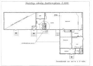 Välkommen till Norrby skola – den före detta skolbyggnaden med äkta gammaldags skolkänsla! Skolhuset från 1956 är tillbyggt i flera omgångar, och har en våningsyta på hela 404 m2! En del av skolbyggnaden har både källare och kallvind. Den gamla vaktmästarbostaden i ena gaveln är 83 m2, består av 3 r+k och är uthyrd. Själva skoldelen omfattar förutom tambur och hall tre stora klassrum, lärarrum, materialrum, kök, 3 wc och omklädningsrum på bottenplan. I källaren finns bl.a pannrum, förråd, wc och rum som använts som slöjdsal. Fastigheten har KNT-nets fiberanslutning. Byggnaden värms upp med olja, och värmekostnaderna 2018 var 6900 €. Kommunalt vatten och eget avlopp. Den egna tomten är 4700 m2. Lagstadgat energicertifikat saknas.